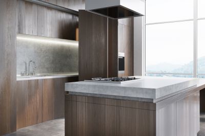 Polished concrete counters offer a sleek, high-gloss finish that enhances modern interiors. The process involves grinding and sealing to achieve a smooth, light-reflective surface. These counters are not only stylish but also highly resistant to wear and spills.